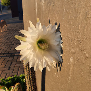 called me outside to see the one-day flower on a cactus. This flower only appears one day a year and